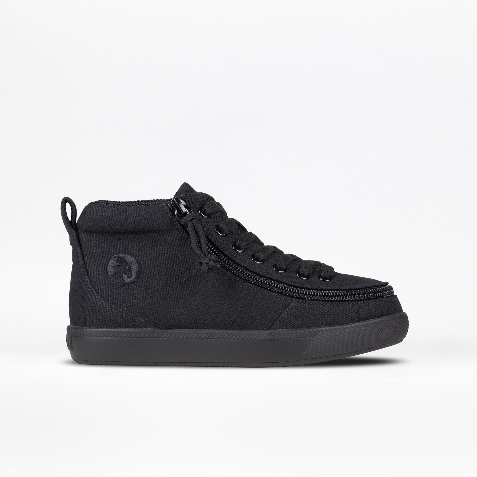 The Black to the Floor BILLY Classic D|R II High Top AFO-friendly shoes consist of three widths: Medium (MDR), Wide (WDR), and Extra-Wide (XDR). The laces on these shoes are functional for an adjustable fit. The thick knit polyester fabric upper lining adds durability for increased tear resistance. The full-wrap zipper closure allows for unobstructed fun and easy entry into the shoe. The insole board and outsole rubber compound helps withstand toe and heel striking. And the two removable insoles (3mm each) provide adjustable depth for custom orthotics.